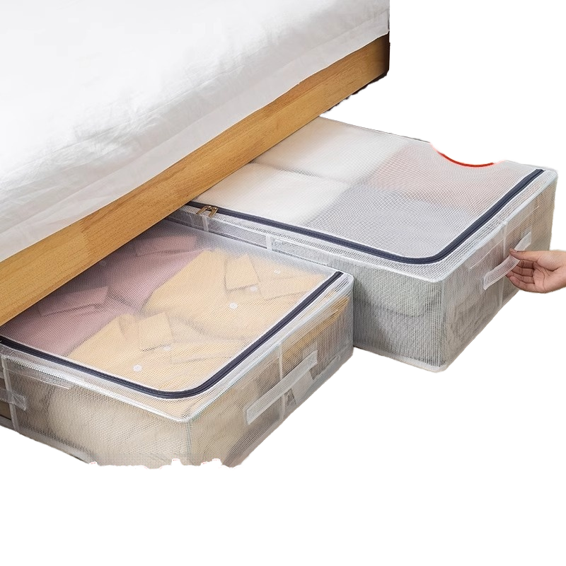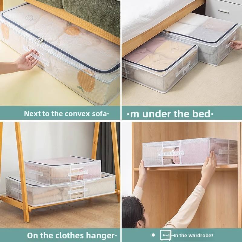 Boîte de rangement moderne sous lit, anti-humidité et anti-moisissure, sac organisateur pour couettes et vêtements, avec fermeture éclair, idéal pour le déménagement, en plastique