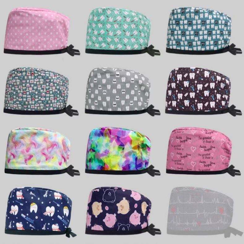 Moderne Unisexe Réglable Sûr Durable En Plastique Chirurgical Scrub Caps Nouvelle Mode Dessin Animé Imprimer Travail Soins Infirmiers Salon De Beauté