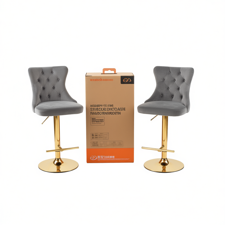 Tabourets de bar modernes rembourrés en velours gris, hauteur réglable, base pivotante en métal, mobilier de bar pour la maison
