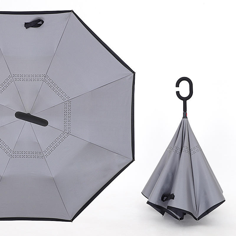 Parapluie inversé moderne à poignée en C, double couche, résistant au vent, à l'envers