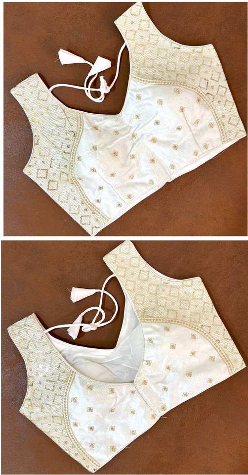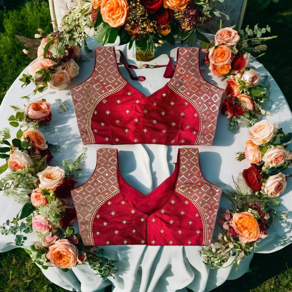 Blouse moderne à col en V avec tissu en soie de Milan, travail de jari, robe de mariée tendance, blouse avec dos Huk