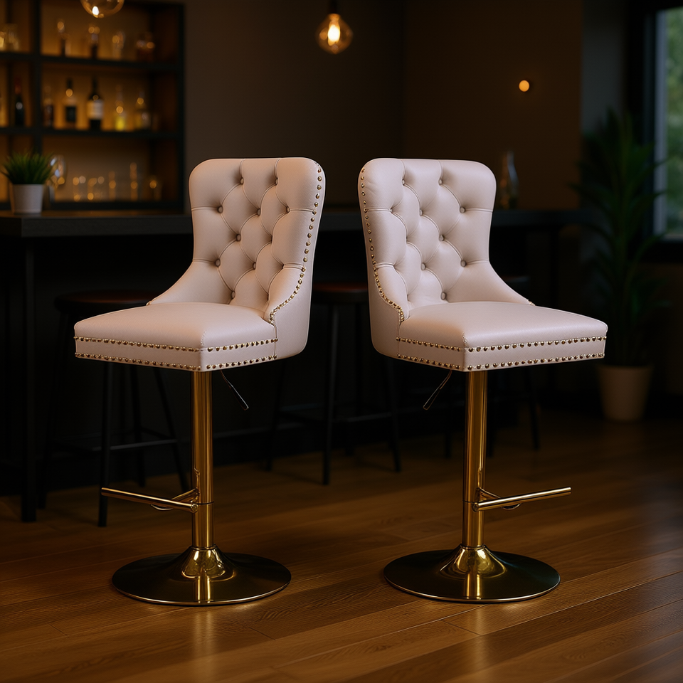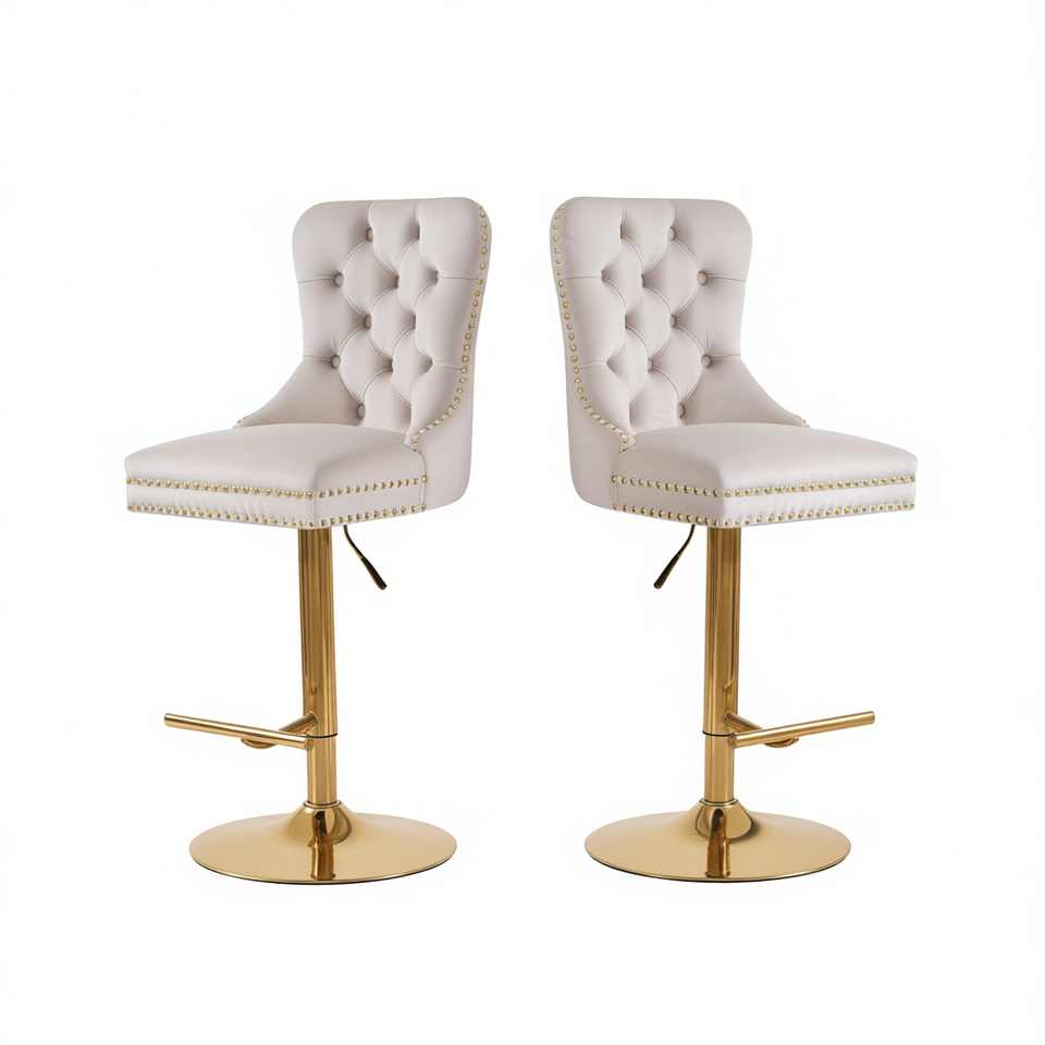 Tabourets de bar modernes en velours, hauteur réglable, base pivotante dorée, rembourrage capitonné, mobilier de bar pour la maison