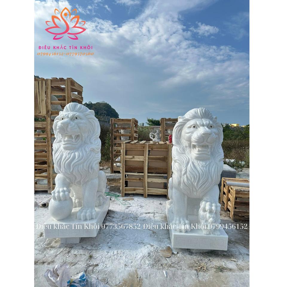 Modern Vietnam Custom Handcarved Polished Surface Outdoor Lion Statue Durable 1-Year Warranty White Color Beautiful Decoration