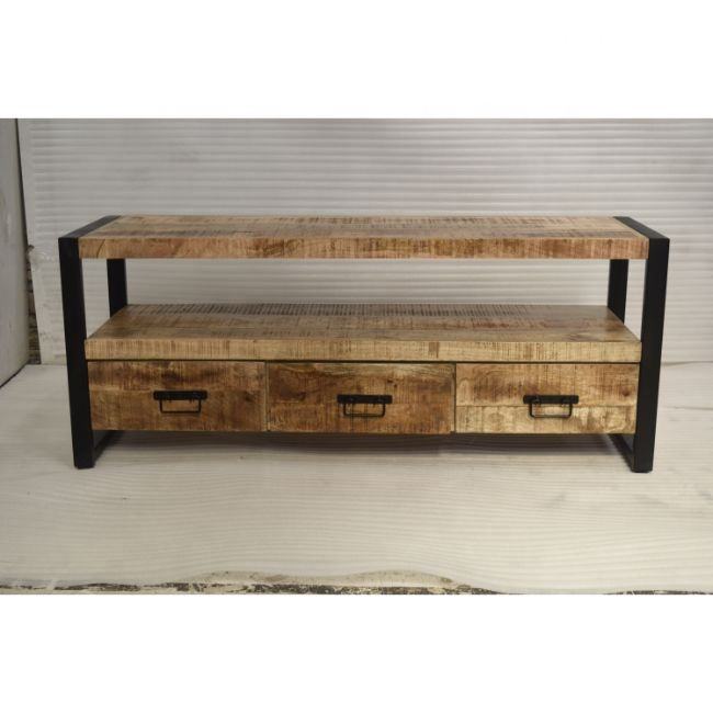 Meuble TV moderne vintage à 3 tiroirs en métal manguier et bois de style industriel pour hôtel ferme chambre à coucher salon de divertissement