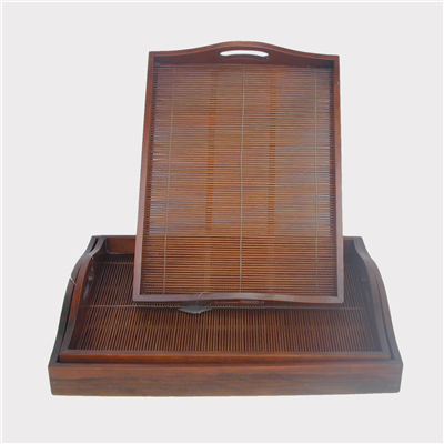 Plateau rectangulaire en bois et bambou:matière naturelle