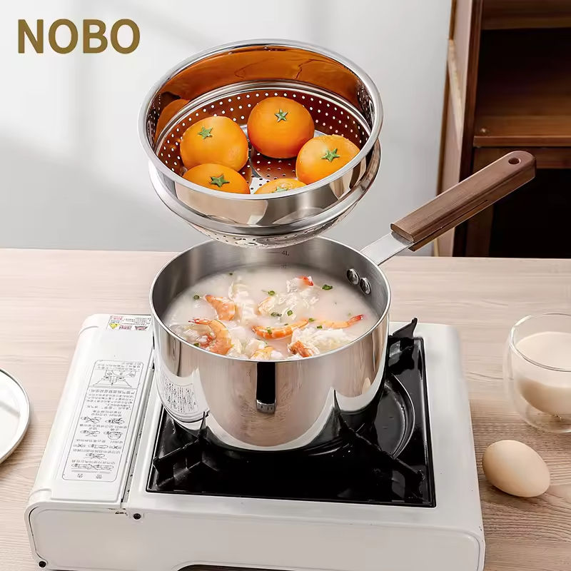 Petit bouillon de soupe au lait en acier inoxydable de style vintage moderne marmite à vapeur pour aliments de bébé marmite à cuisson intégrée