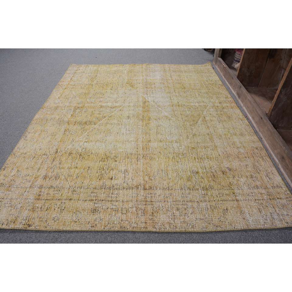 Modern Vintage Turkish Rug 4.3 X 5.4ft Yellow Wool Large Area Living Room Carpet Latex Backing Rectangle Patchwork for Hallway