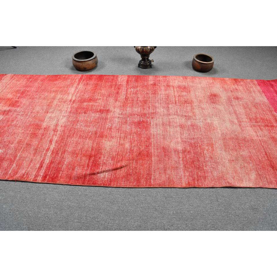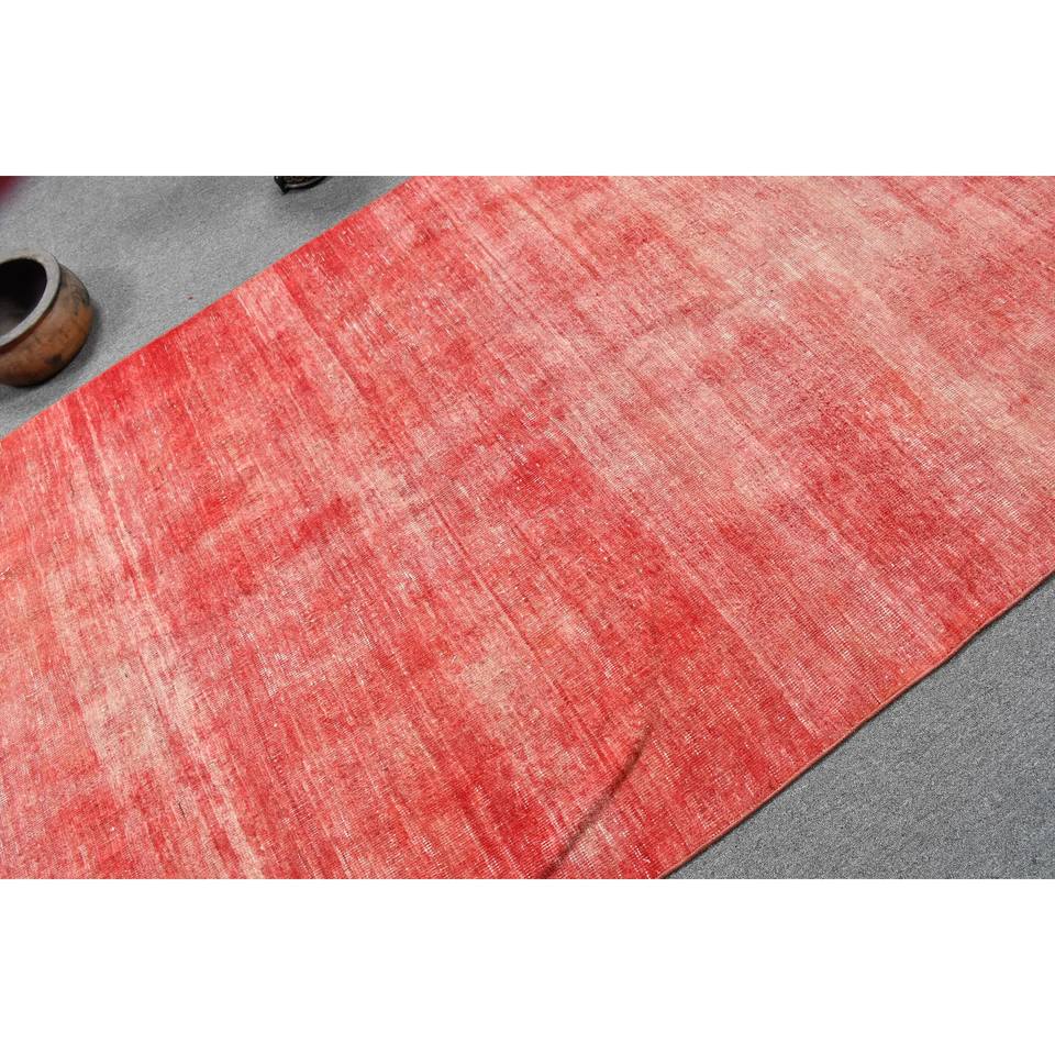 Tapis Turc Vintage Moderne 4.6X11.5 ft Rouge Grande Surface Laine Patchwork Latex 10mm Abstrait pour Couloir Rectangulaire Roomrug