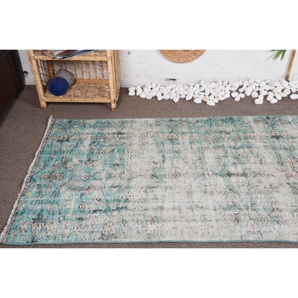 Tapis Turc Vintage Moderne Vert Bleu Patchwork Design Large 3.2x7.4ft Zone Laine Matériel Latex Abstrait Rectangle Couloir
