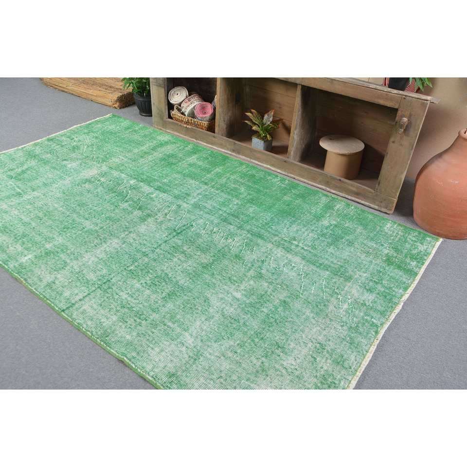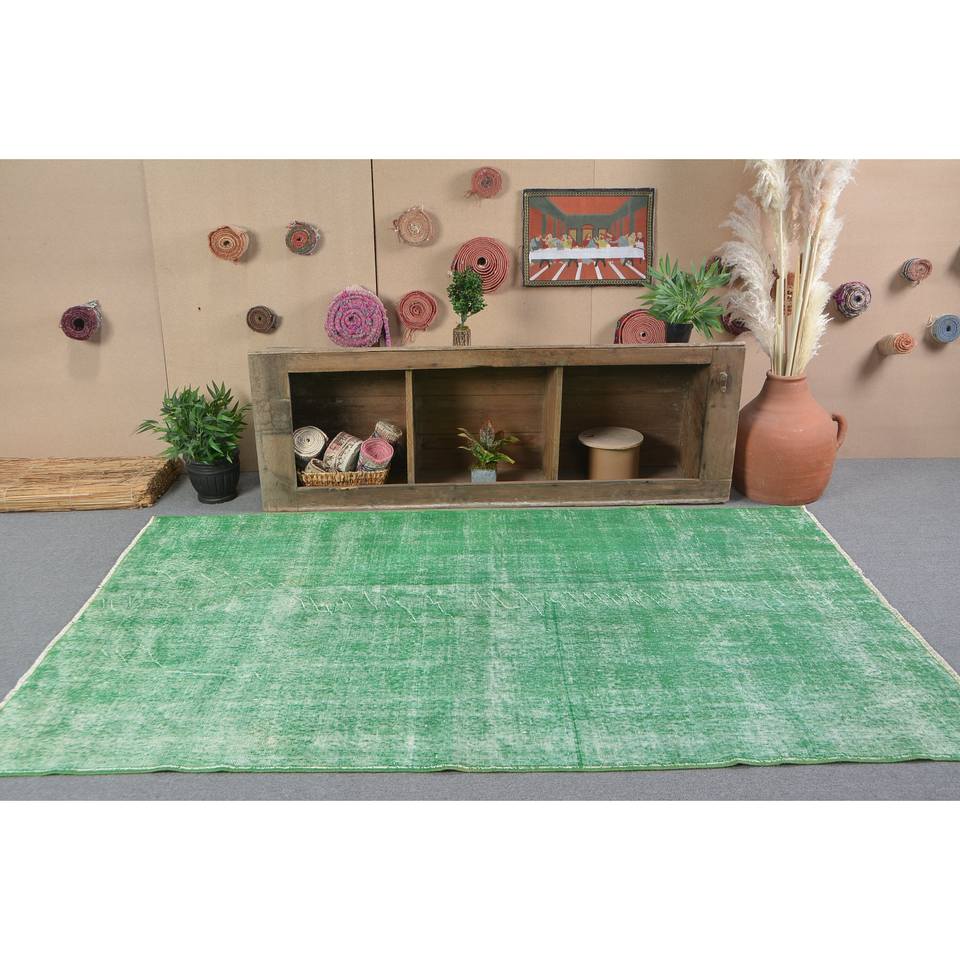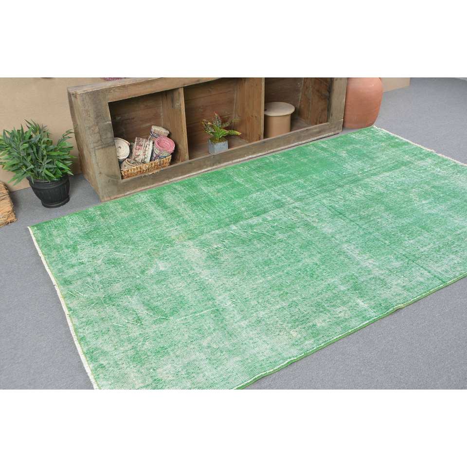 Tapis turc vintage moderne Grand 4.9 X 8.3ft Vert Patchwork Design Laine Matériau Latex Support Rectangle pour Couloir Décoration de Chambre