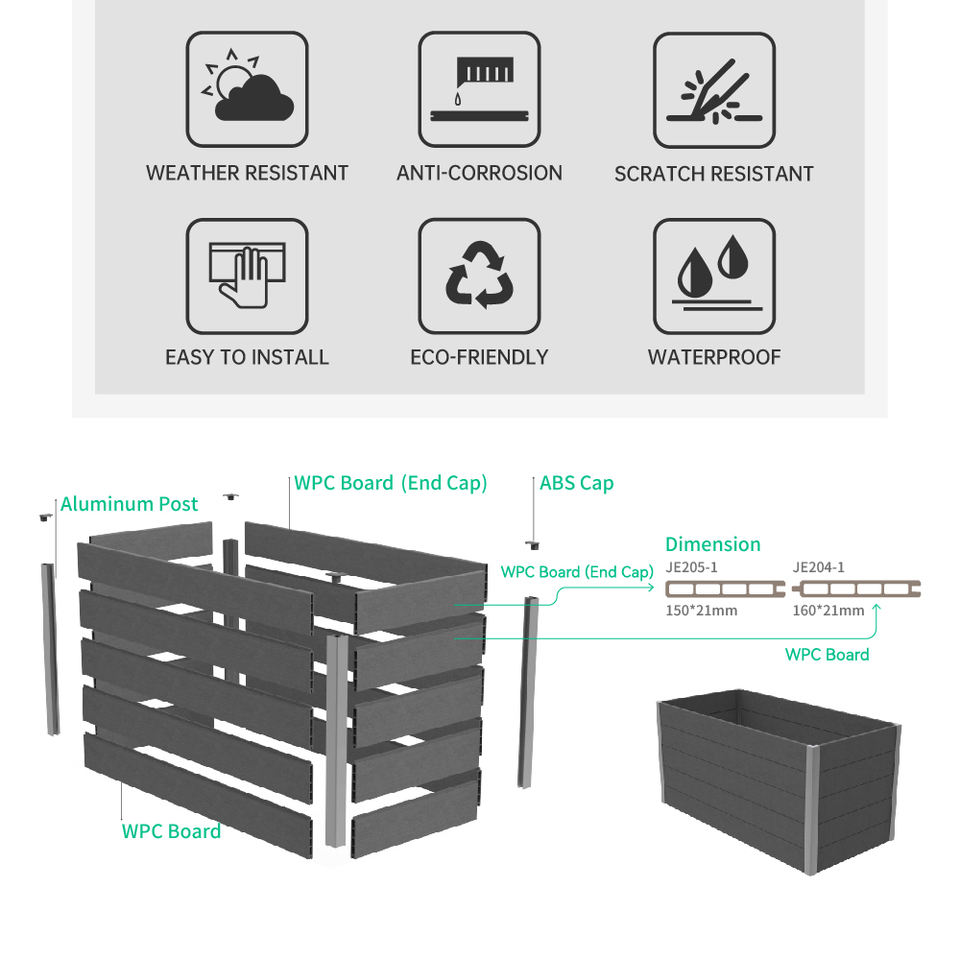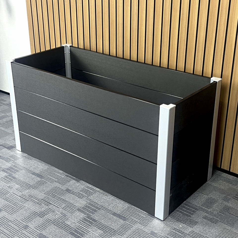 Jardinière surélevée moderne en composite WPC, bac à fleurs durable, haut, carré ou rectangulaire pour l'extérieur, pour jardins