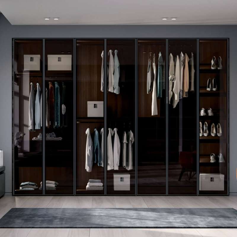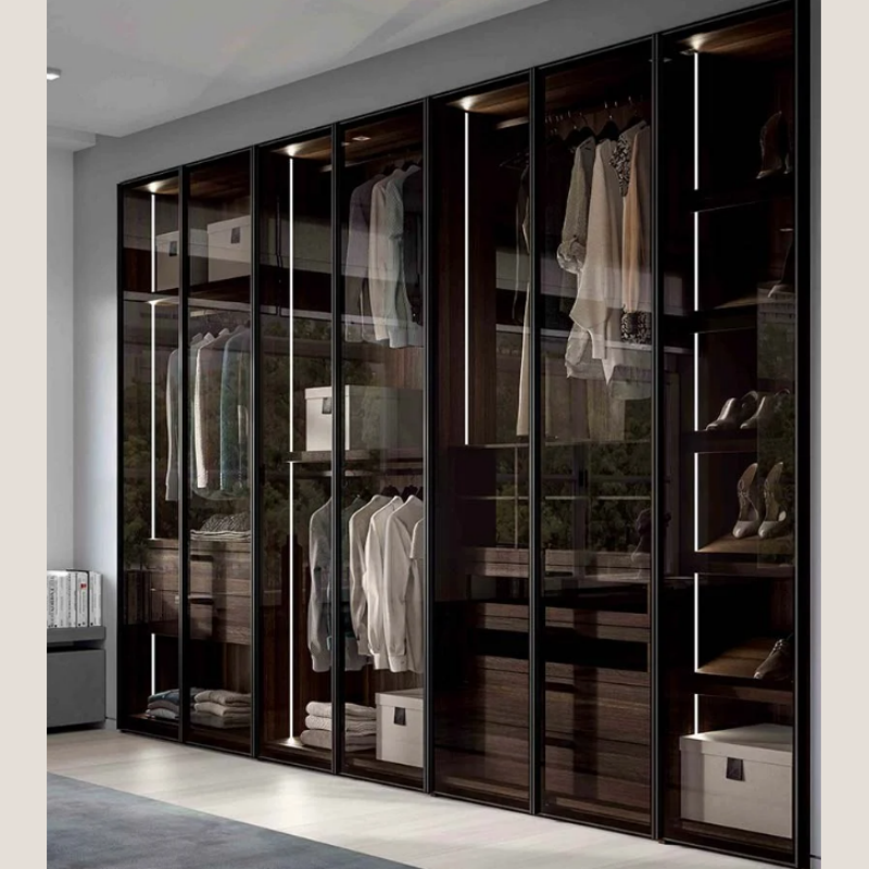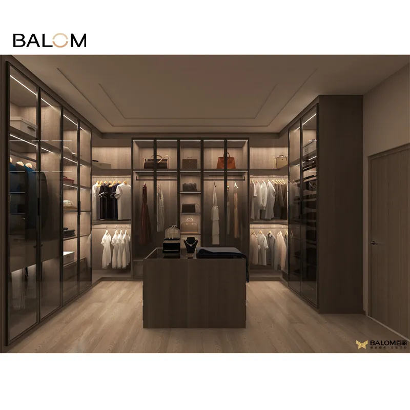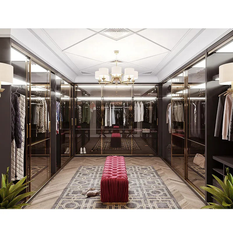 Designs de Dressing Modernes Portes en Verre Meubles de Chambre avec Tiroirs de Rangement LED Armoires en Verre
