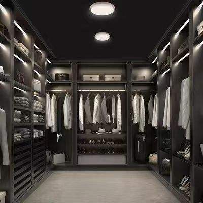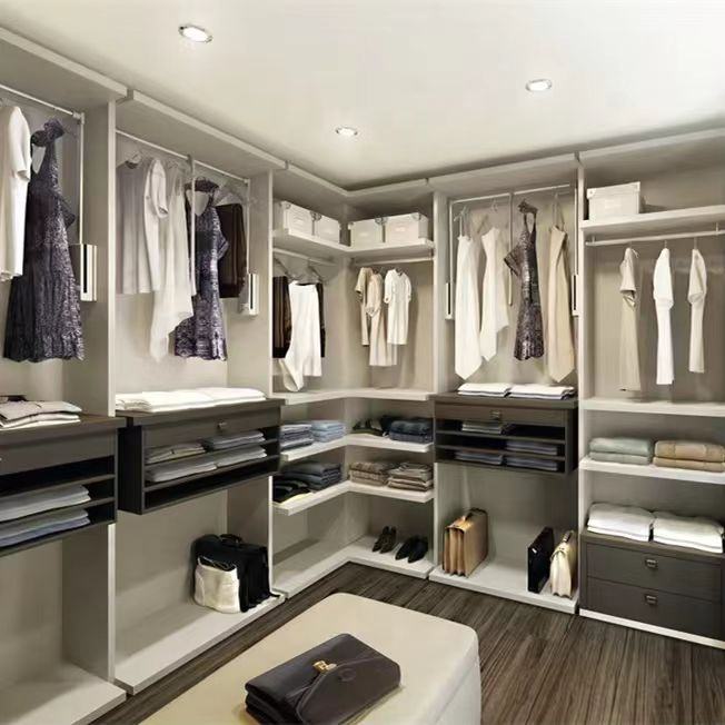 Système d'organisation de dressing moderne, multifonctionnel, gain de place, armoire à vêtements, design personnalisé, nouveau design, bois, verre, chambre à coucher, hôtel