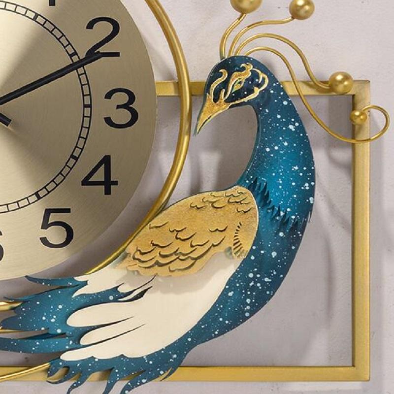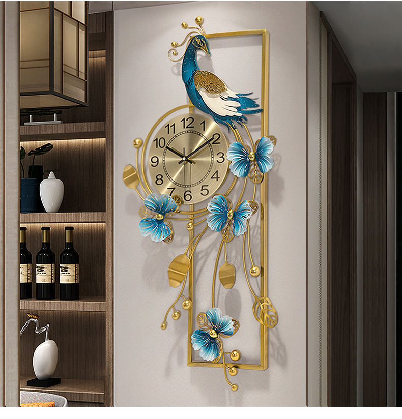 Horloge Murale Moderne Salon Horloge Créative Paon en Métal Horloge Silencieuse Atmosphérique en Fer Forgé à Suspendre