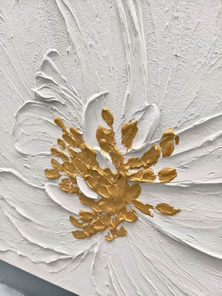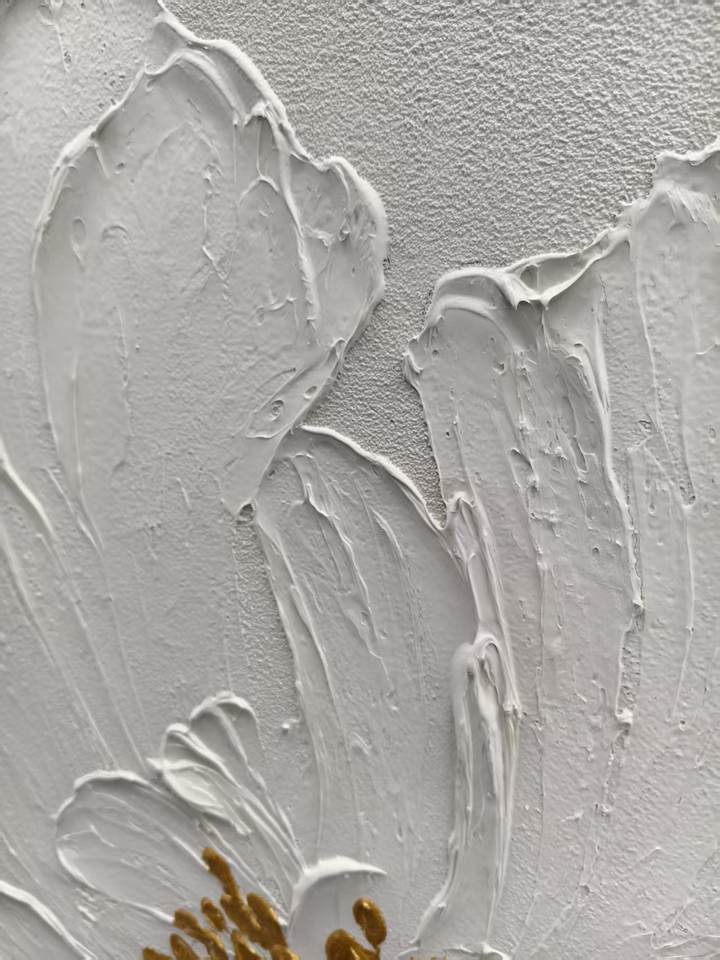 Décoration murale moderne, toile faite à la main, peinture acrylique blanche, art mural abstrait, peintures de fleurs texturées 3D