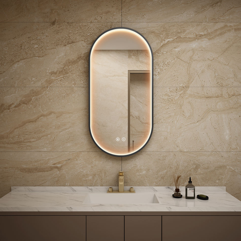 Miroir de salle de bain moderne intelligent avec montage mural Miroir de gradation éclairé à écran tactile et rétroéclairé