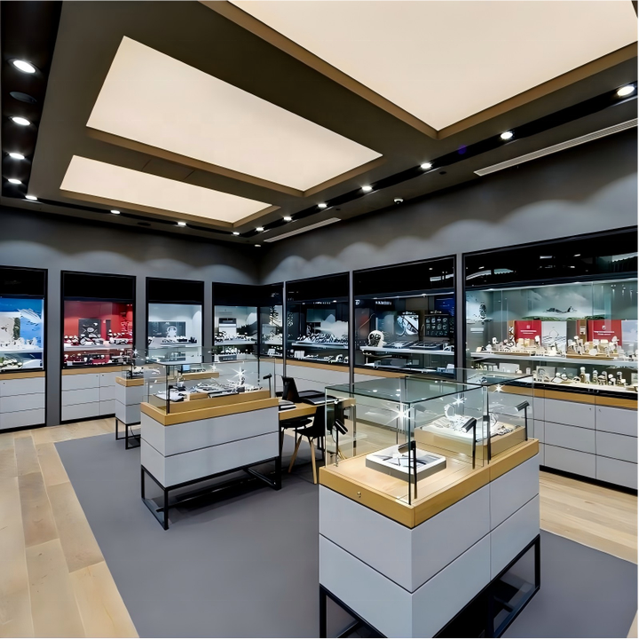 Vitrine murale moderne pour bijoux et montres avec éclairage LED pour les centres commerciaux