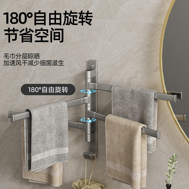 Porte-serviettes mural rotatif moderne en alliage d'aluminium, pliable, multi-barres, rangement de salle de bain, finition gris anthracite