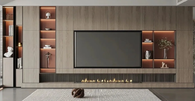 Modern Wall-Mounted Extendable Wooden Panel TV Cabinet with Storage for Living Room & Dining TV Stand Home Use