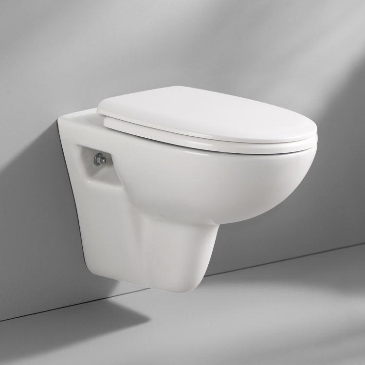 WC mural moderne, design flottant avec réservoir encastré, WC sans bride, gain de place