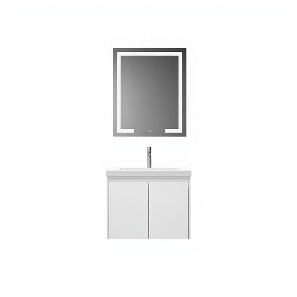 Meuble-lavabo mural moderne en bois massif durable avec vasque en céramique intégrée, miroir LED, résistant à l'eau, pour usage hôtelier, Vietnam