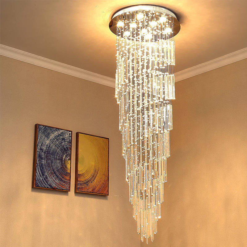 Lustre moderne en cristal de cascade Asahigoe, pierre brute, durable, pour salon, escalier, hall d'hôtel, éclairage de plafond LED de luxe