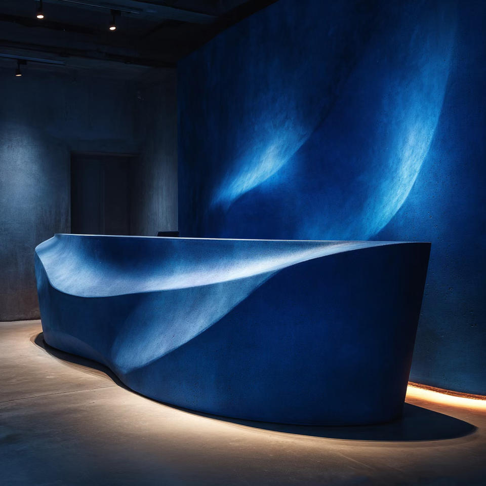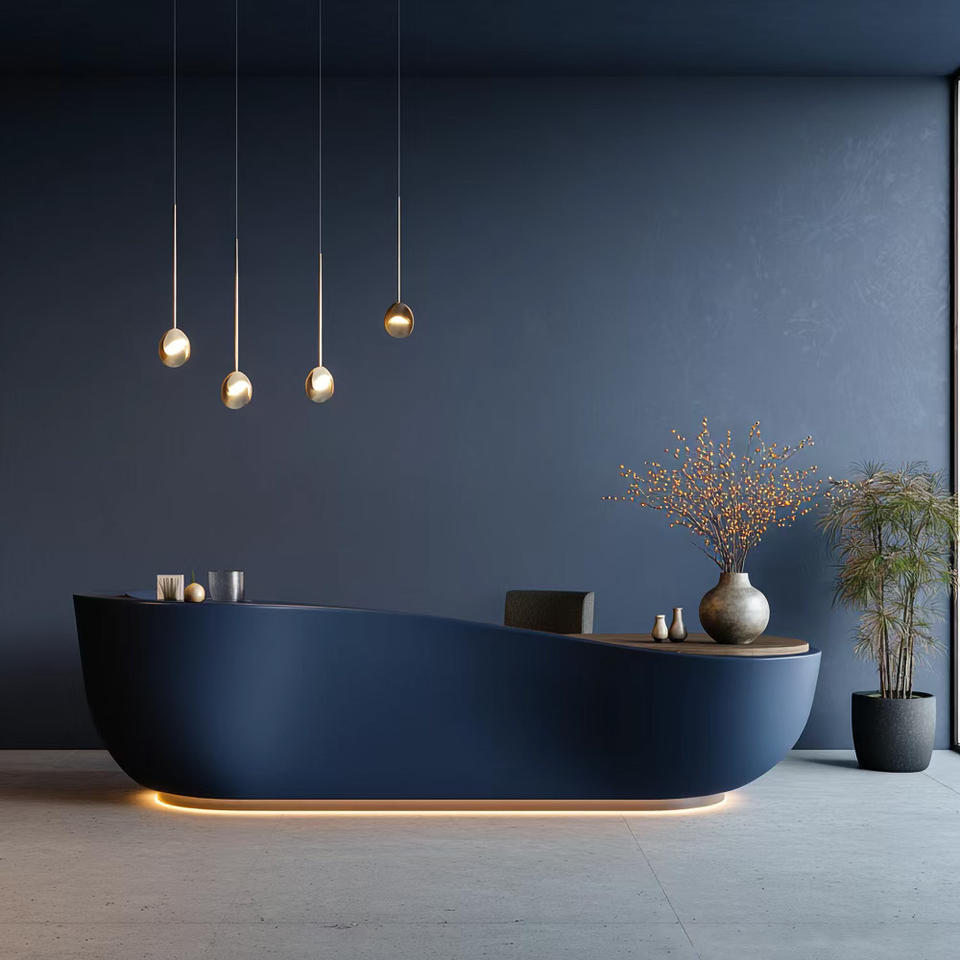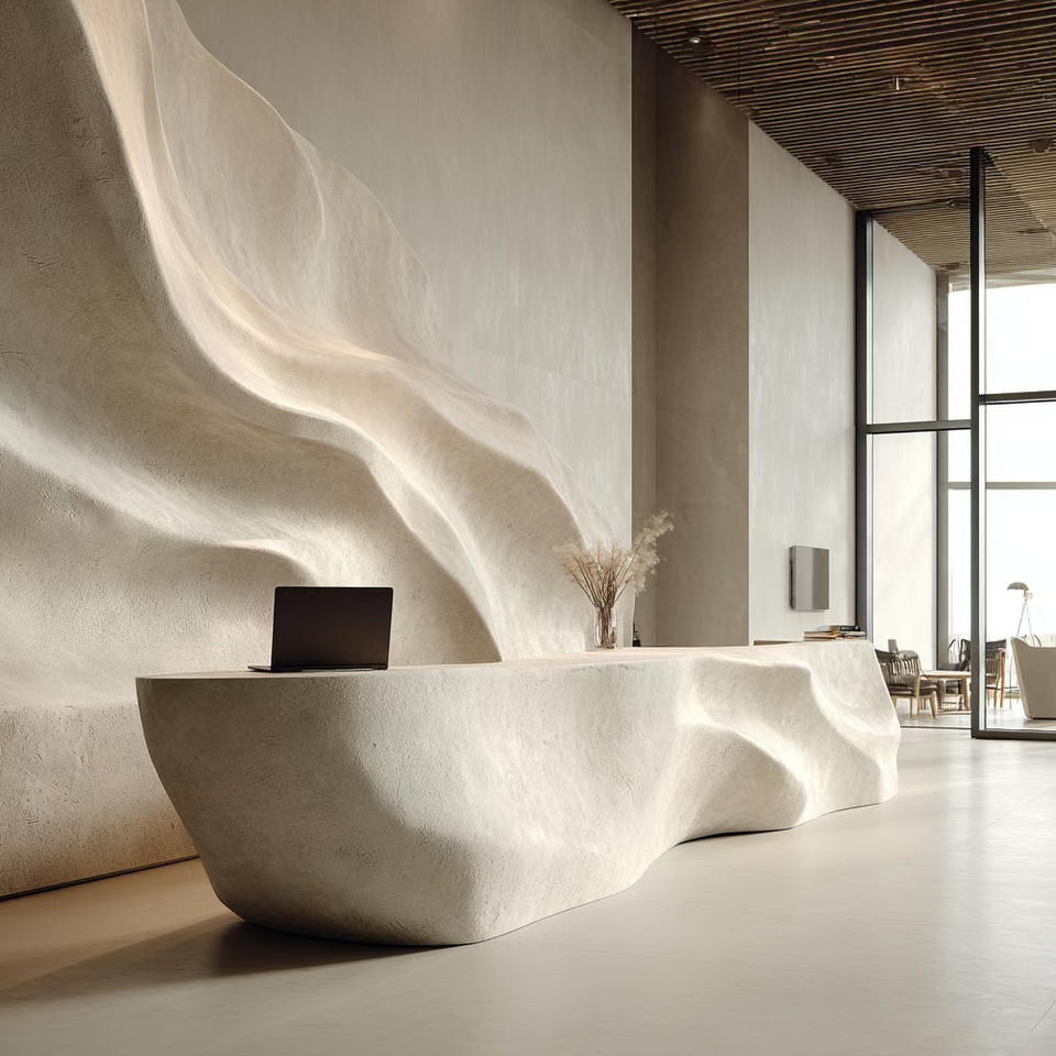 Comptoir de réception extensible moderne ondulé imprimé en 3D – Idéal pour les halls d'hôtels élégants, les showrooms de vente au détail, les centres commerciaux et les espaces frontaux contemporains des bureaux