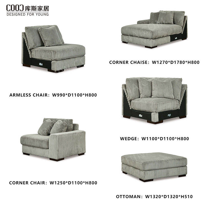 Nom du produit:Ensemble de canapé sectionnel en velours côtelé surdimensionné et moelleux