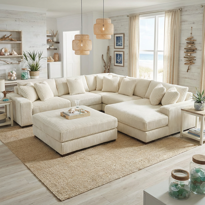 Ensemble de canapé sectionnel en velours côtelé surdimensionné et moelleux