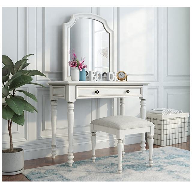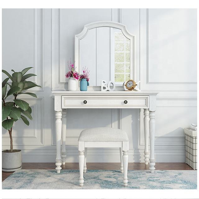 Coiffeuse blanche en bois, 1 tiroir long pour chambre à coucher, 1 pièce