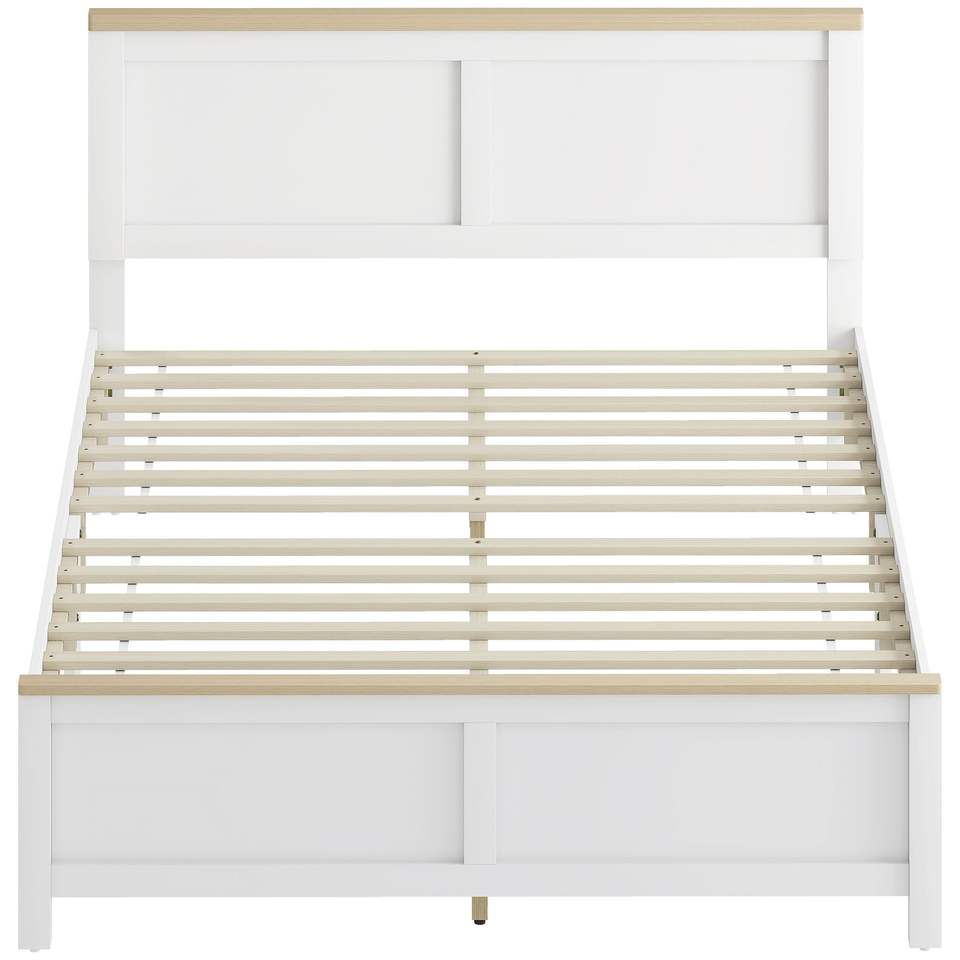 Cadre de lit double moderne blanc avec tête de lit, assemblage facile, pas de sommier à ressorts nécessaire, sommier à lattes en bois