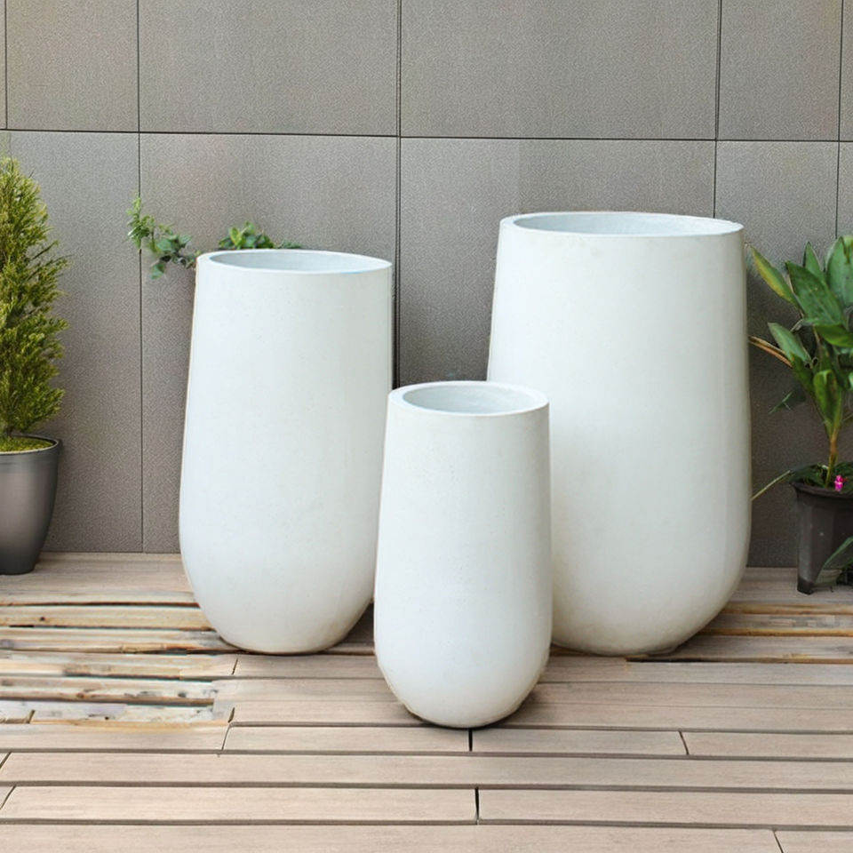 Pots de jardin GRC blancs modernes Lot de 3 pour la décoration extérieure et l'affichage des plantes