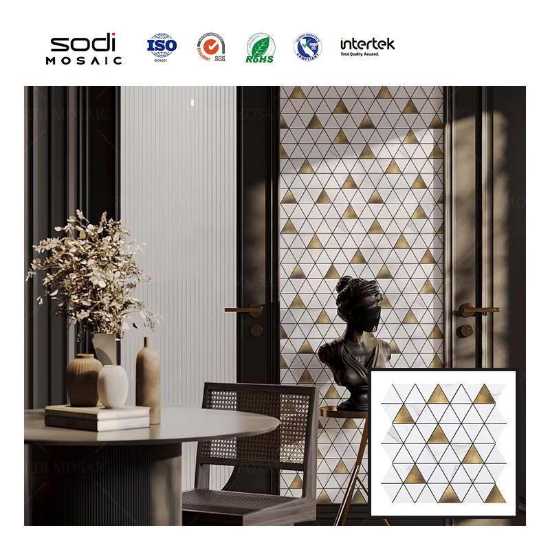 Autocollants de mosaïque en or blanc moderne pour salle de bain, douche, salon, cuisine, crédence - Revêtement mural imperméable décoratif