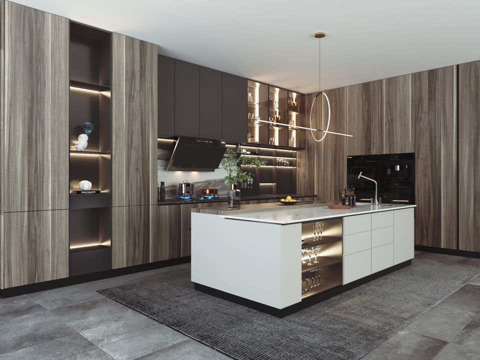 Ensemble de meubles de cuisine blancs modernes personnalisables avec conception gratuite, comprenant évier et îlot, directement de l'usine chinoise