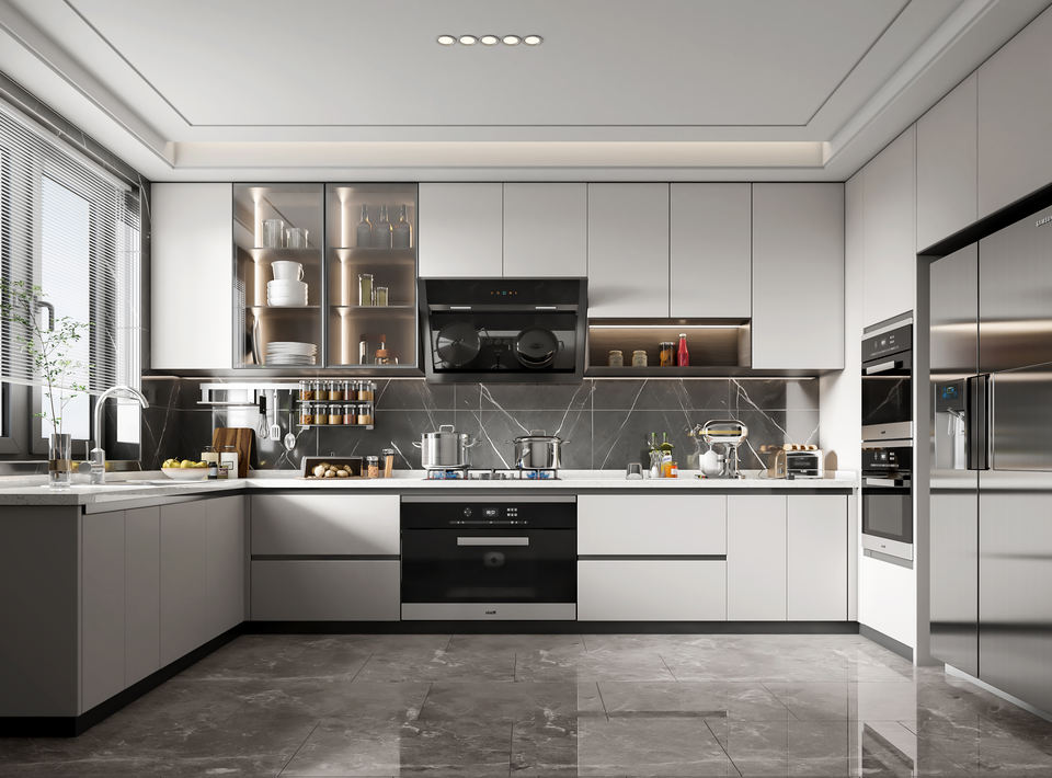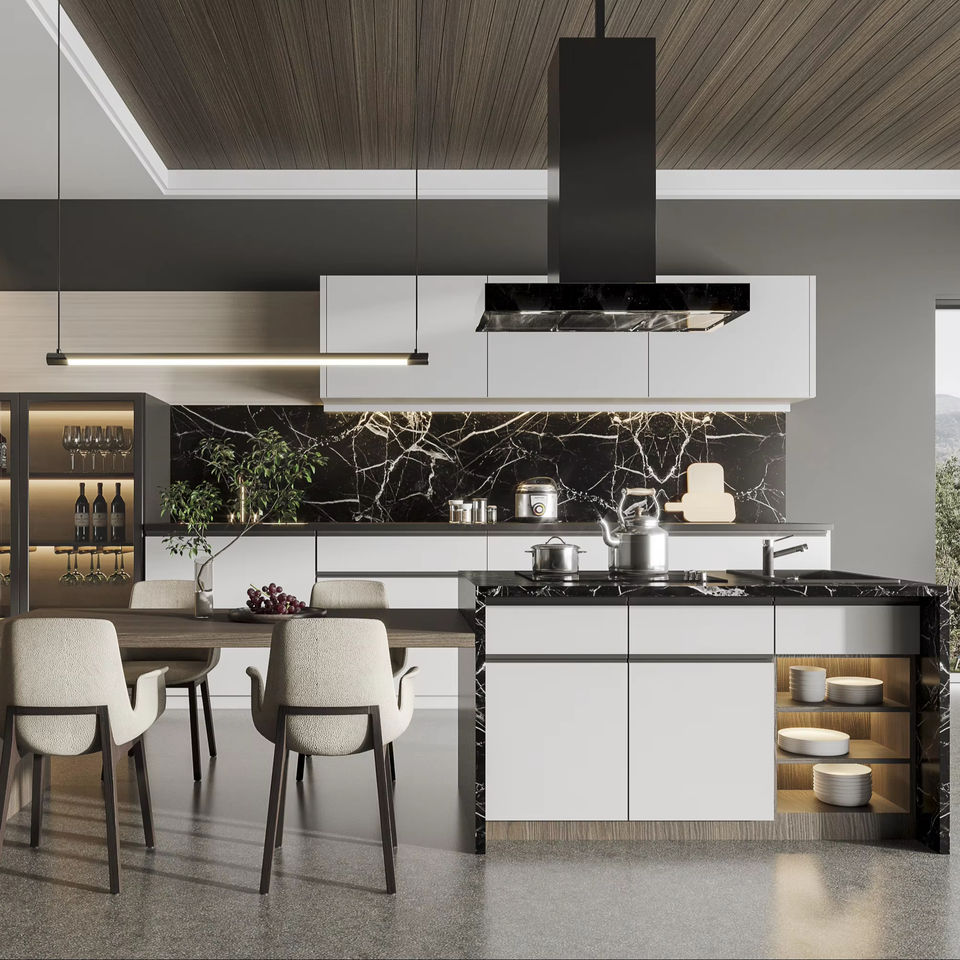 Armoires de cuisine blanches modernes, taille personnalisée, meubles en bois massif, matériaux respectueux de l'environnement