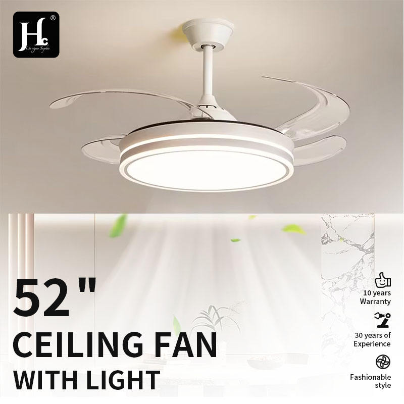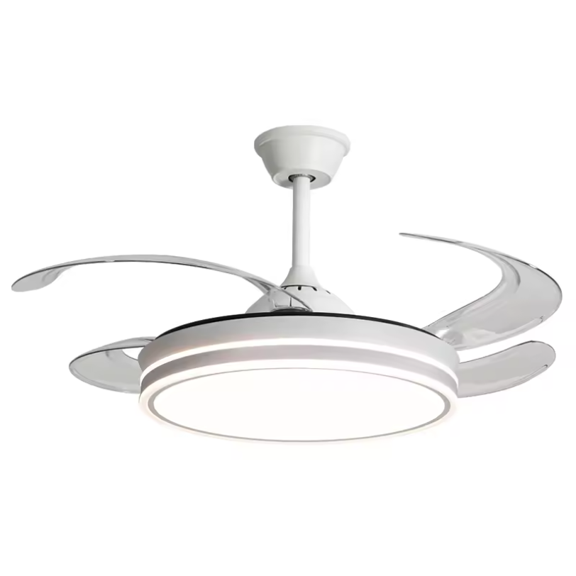 Ventilateur de plafond LED blanc moderne avec lumière et télécommande, lampe de ventilateur de plafond 3 couleurs pour chambre à coucher