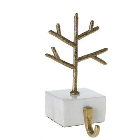 Support de chaussettes de Noël moderne en marbre blanc avec base en or et branche d'arbre, crochet pour cheminée, décoration de maison