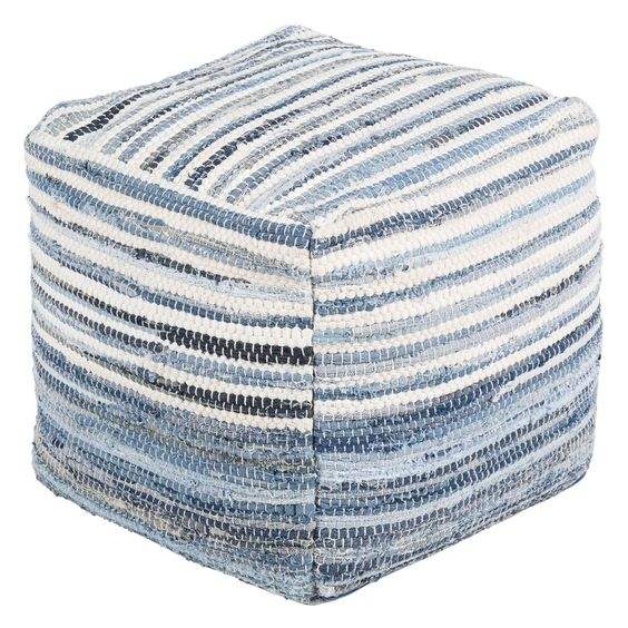 Tabouret de pouf rectangulaire en coton blanc marine moderne tissé à la main tapis de chiffon carré pour salons et chambres à coucher pouf repose-pieds
