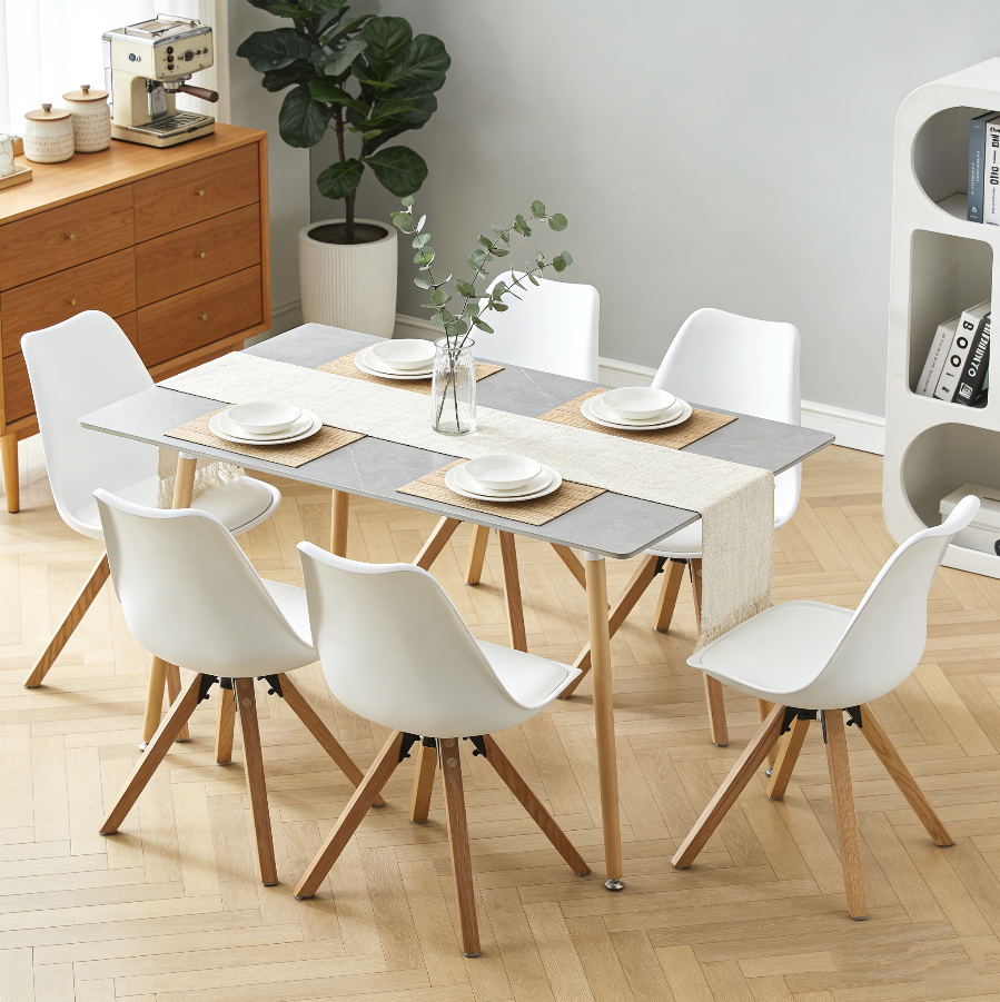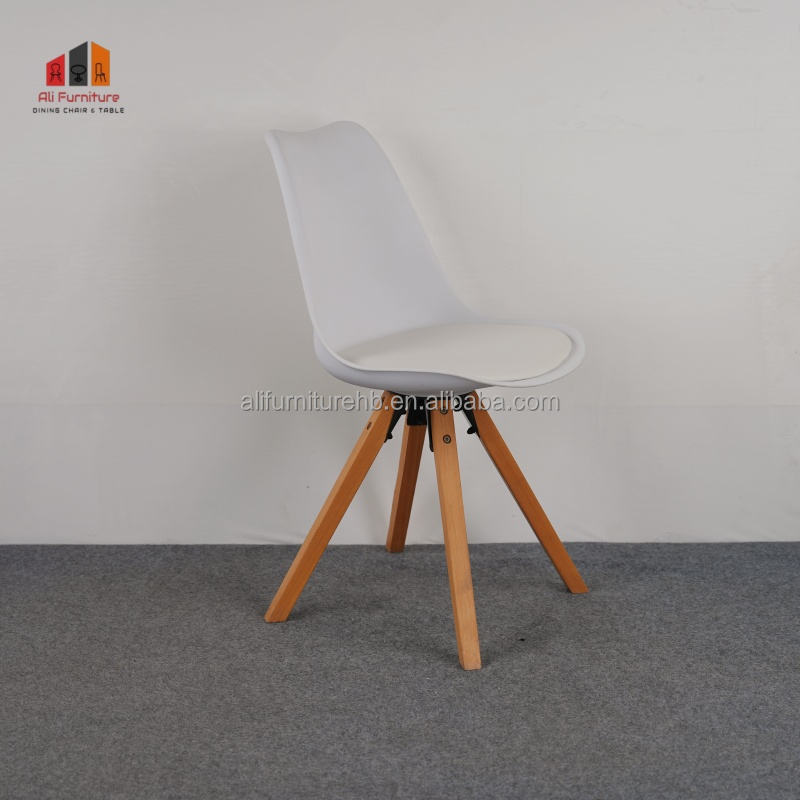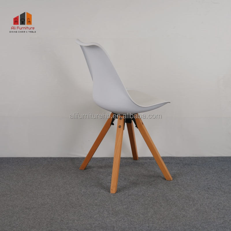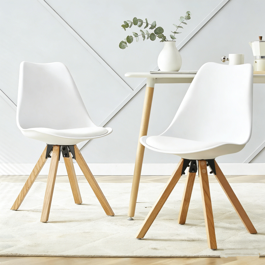 Chaise de salle à manger moderne en PP blanc avec pieds en bois de hêtre naturel, style scandinave, design minimaliste pour la maison, le café et le bureau