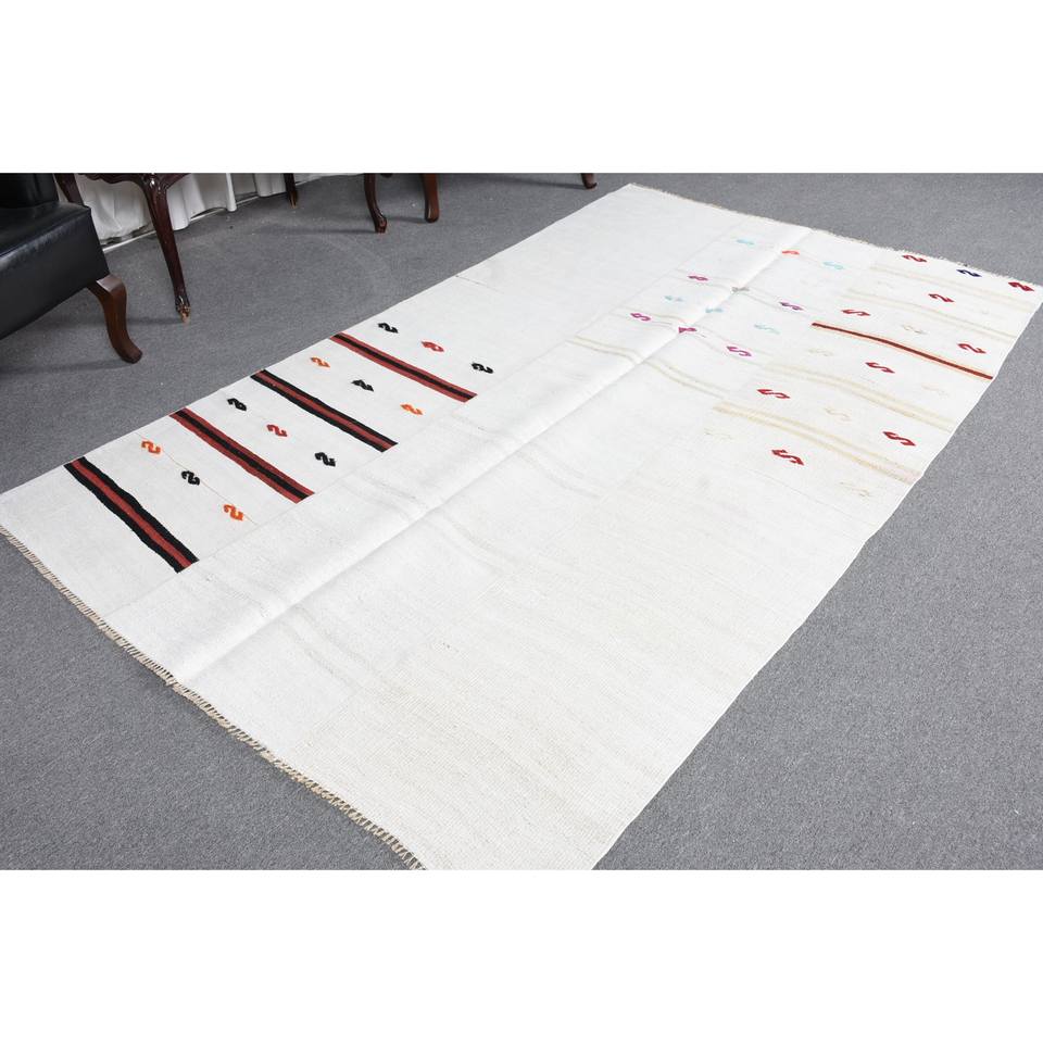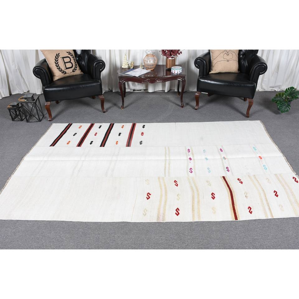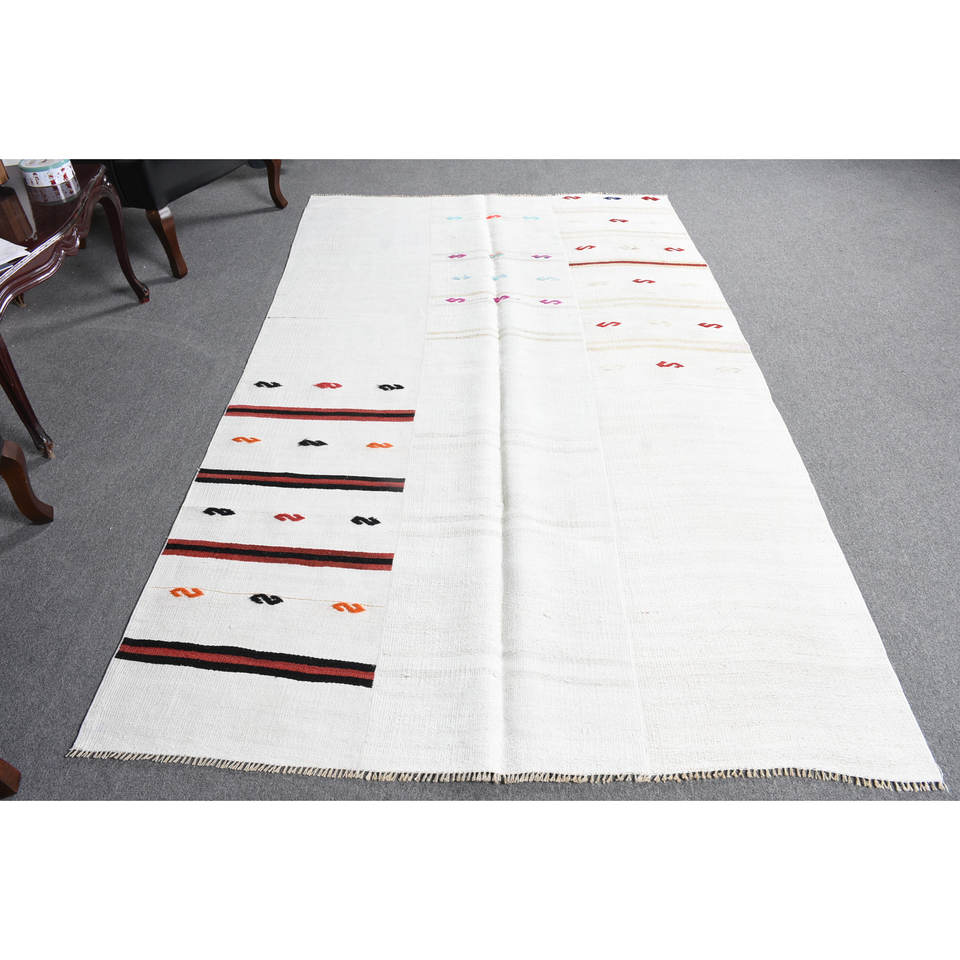 Tapis moderne en laine blanche 5.1x8.4 pieds Design rayé et patchwork turc pour décorations de salon soutenu en latex