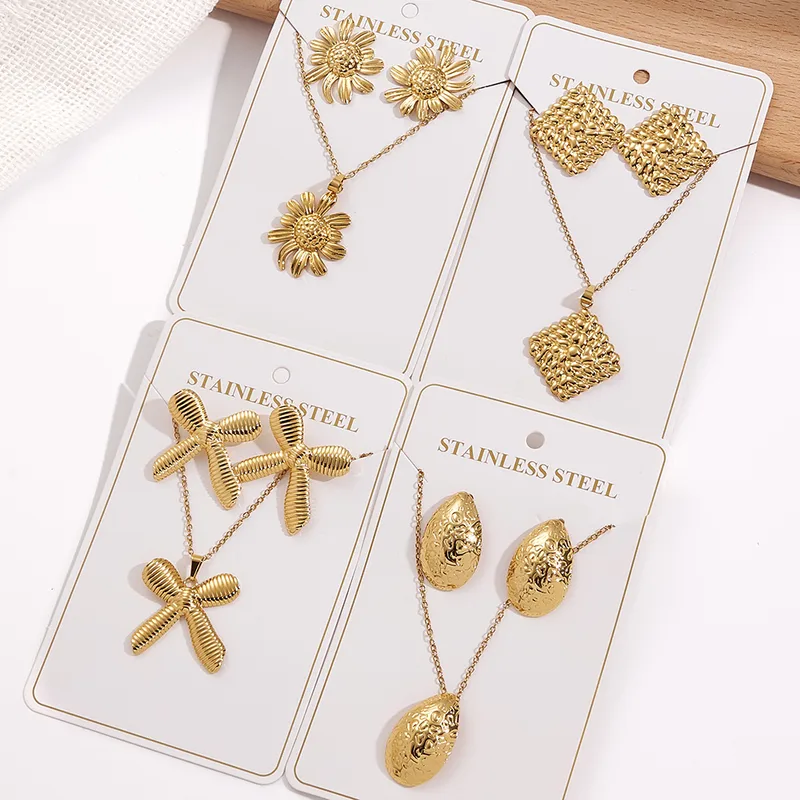 Modern Women's Stainless Steel Jewelry Set Butterfly Knot Waterdrop Square Flower Design for Wedding Holiday Necklace Earrings