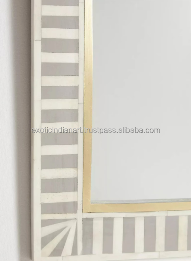 Cadre de miroir en bois moderne avec incrustations d'os, miroir mural de qualité supérieure par EXOTIC INDIAN ART