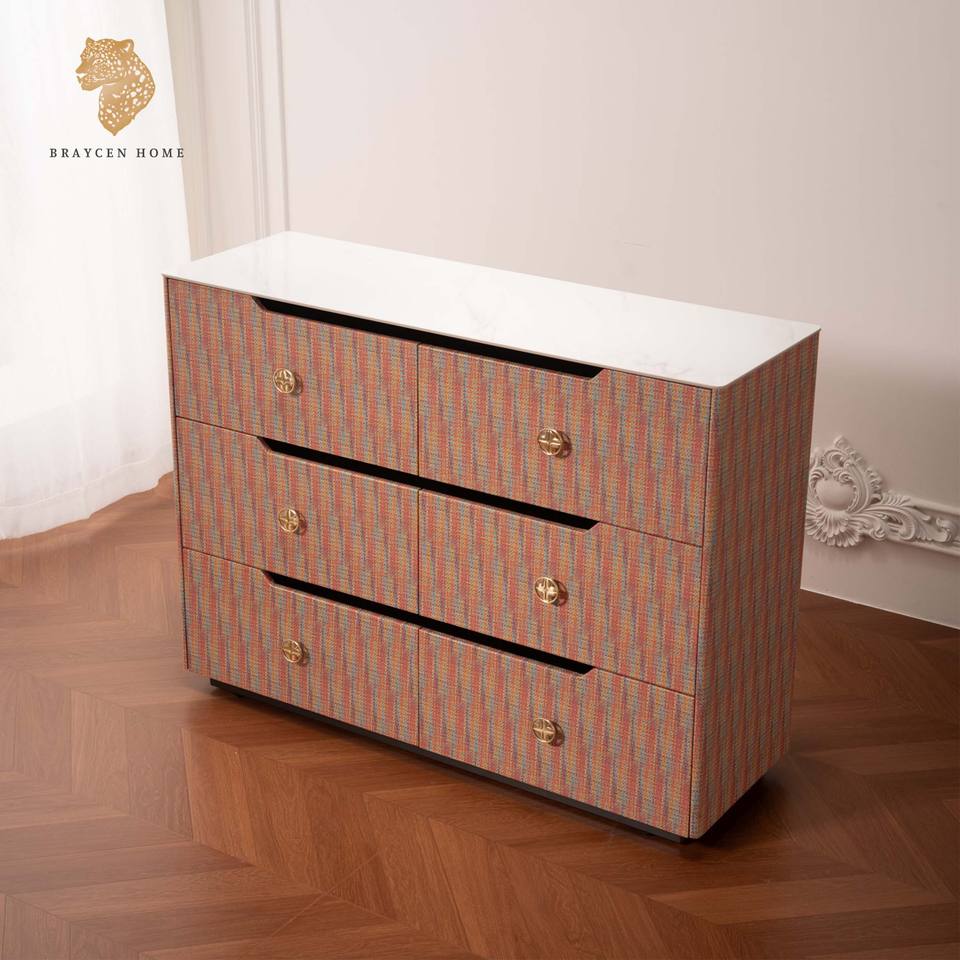 Modern Wood Cabinet Simple Household Chest of Drawers Leather Sideboard Solid Wood High Bedroom Bed Front Cabinet