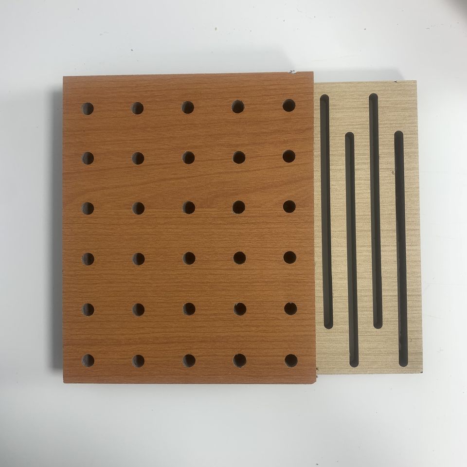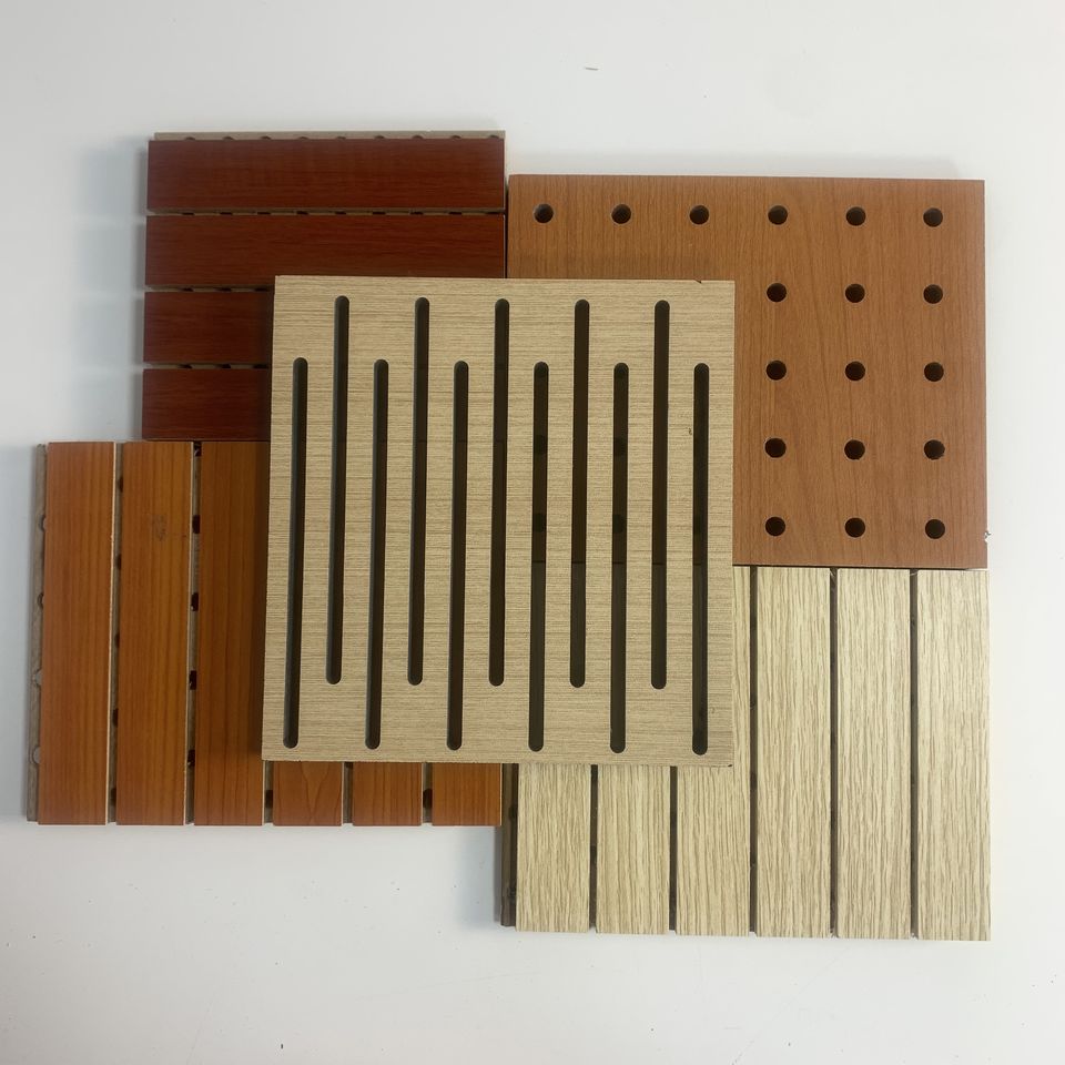 Panneaux acoustiques modernes en bois ignifuges et étanches à l'humidité avec finition en placage Céramique Classe aluminium Rainure perforée Isolation phonique
