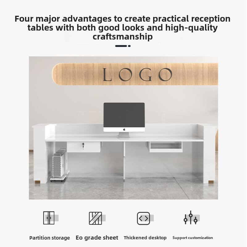 Bureau d'accueil moderne en bois LINOU Modèle 2408 pour hôtels, cliniques dentaires, salons de beauté, établissements de formation - Caisse/Vêtements