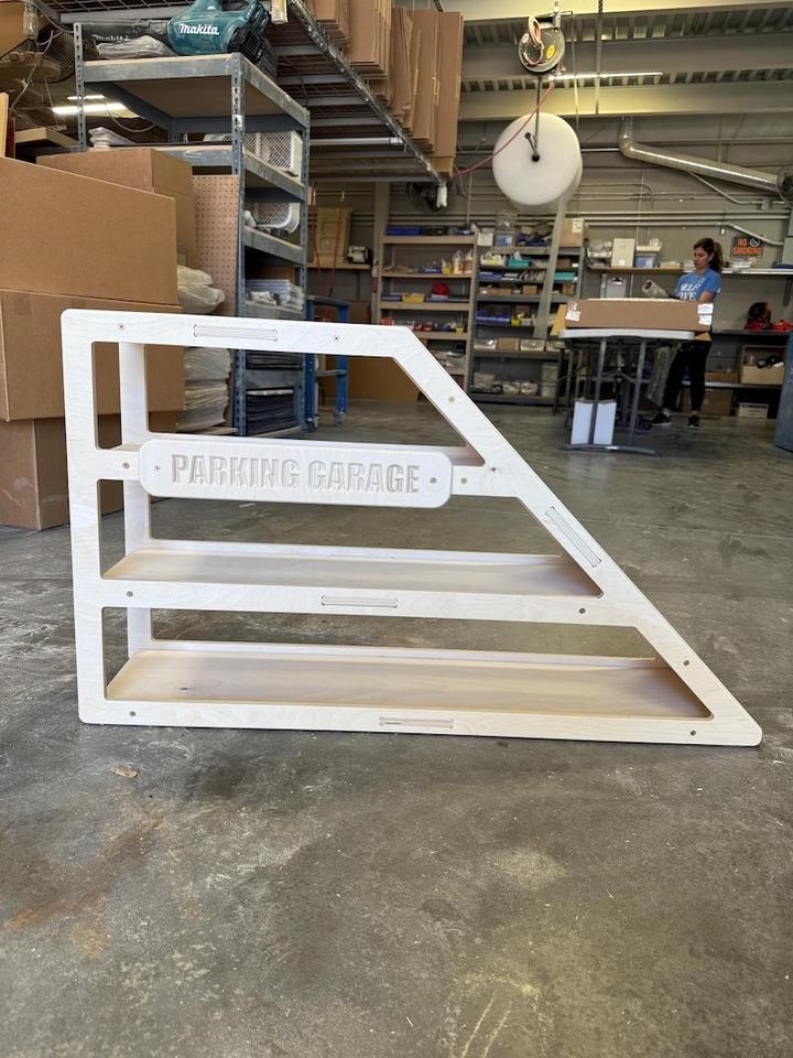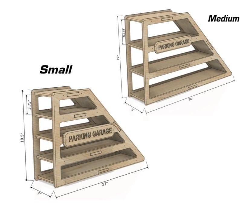 Présentoir de garage de voiture jouet en bois moderne pour les tout-petits Cadeau d'anniversaire de garçon avec rampe de voiture pour le rangement de l'école ou les jeux