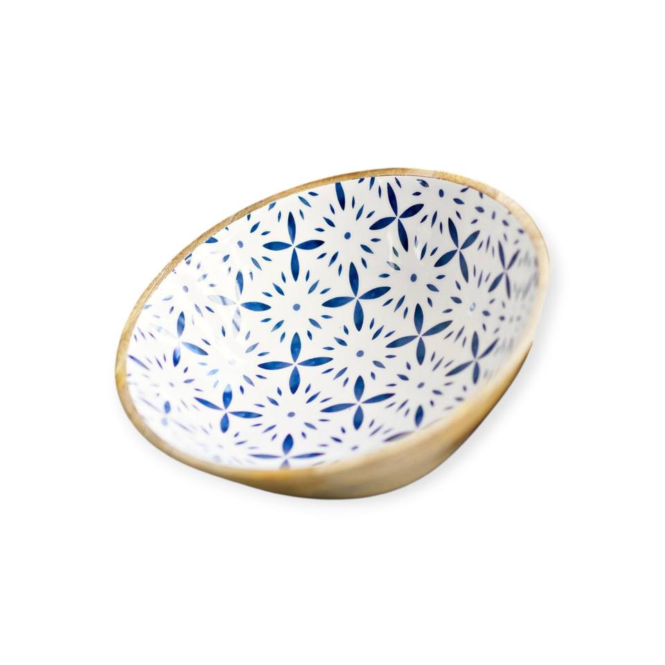 Bol en bois moderne avec motif de poisson et intérieur émaillé pour la décoration de table de style côtier