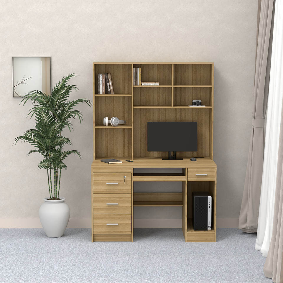 Bureau d'ordinateur moderne en bois personnalisable avec meuble de rangement, table d'écriture avec tiroirs verrouillables et étagère pour la maison et les étudiants