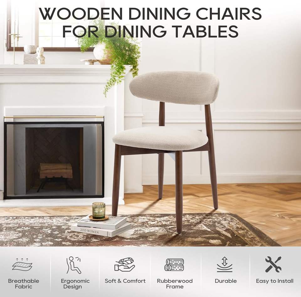 Ensemble de 4 chaises de salle à manger modernes en bois, ergonomiques, rembourrées en tissu, pieds effilés, repose-pieds, beige, meubles de maison