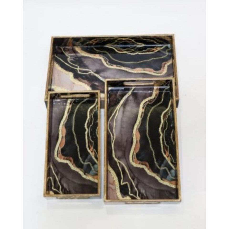 Ensemble de trois plateaux de service modernes en bois émaillé de forme rectangulaire pour la cuisine de restaurant